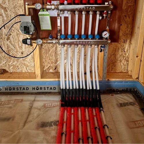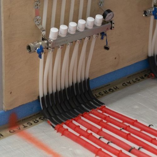The pipe bends’ support allows the installer to bend heating pipes in a 90 degree bow without forming kinks which impede flow within the pipe. It’s elbows can be used to guide pipes through floors, ceilings and to a manifold cabinet. It holds the pipe and directs it to the manifold.